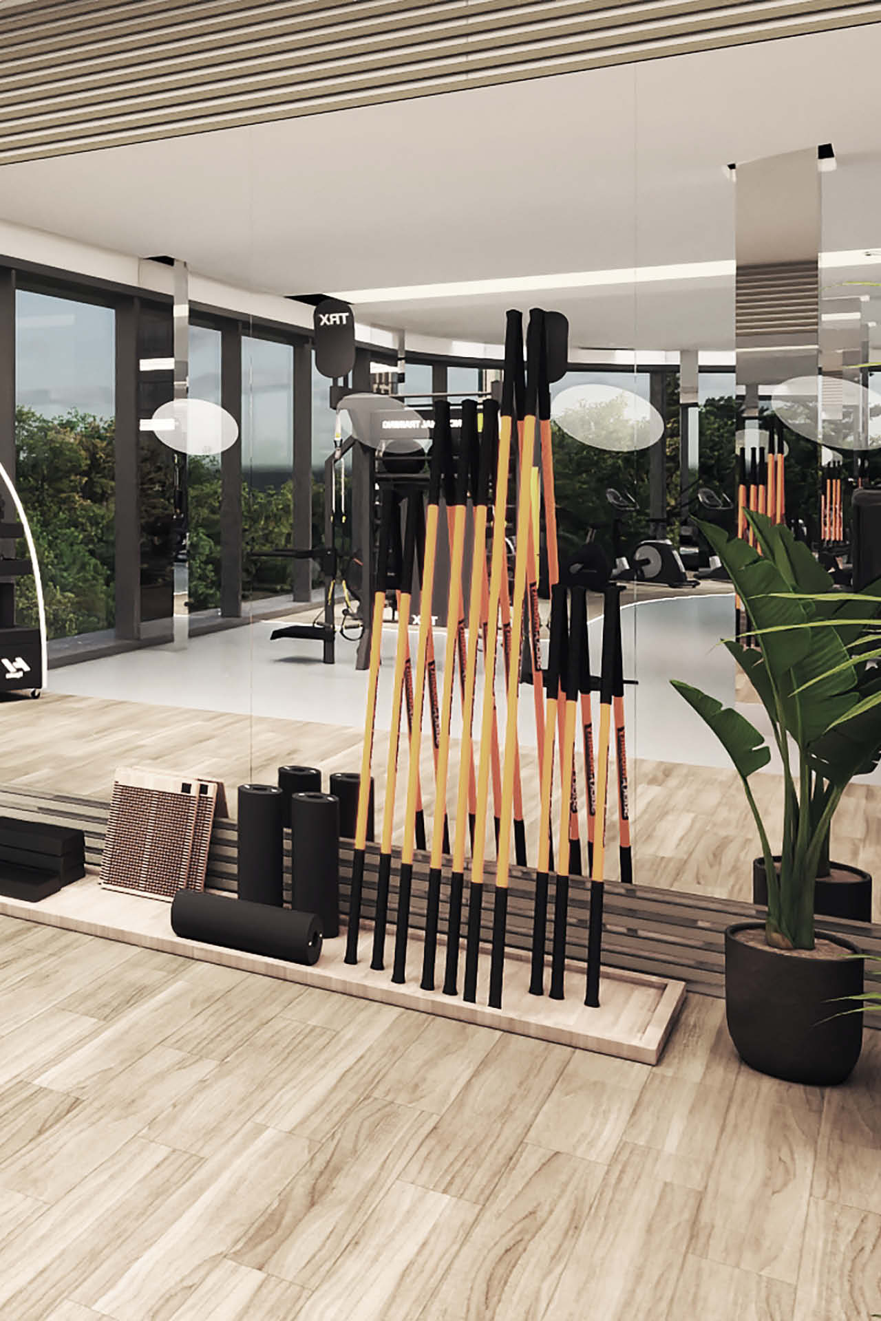 Der Trainingsbereich überzeugt durch eine beeindruckend große Auswahl an Trainingsgeräten. Besonders hervorzuheben sind die modernen Cardio-Geräte von Assault Fitness, die wir direkt vor der Fensterfront platziert haben – für ein motivierendes Training mit Ausblick. Ergänzt haben wir das Angebot durch einen weitläufigen Mobility- & Recovery-Bereich, der optimale Voraussetzungen für die Regeneration nach dem Training bietet. Hier stehen unter anderem Mobility Sticks und Faszienrollen zur Verfügung, um gezielt Beweglichkeit und Wohlbefinden zu fördern.