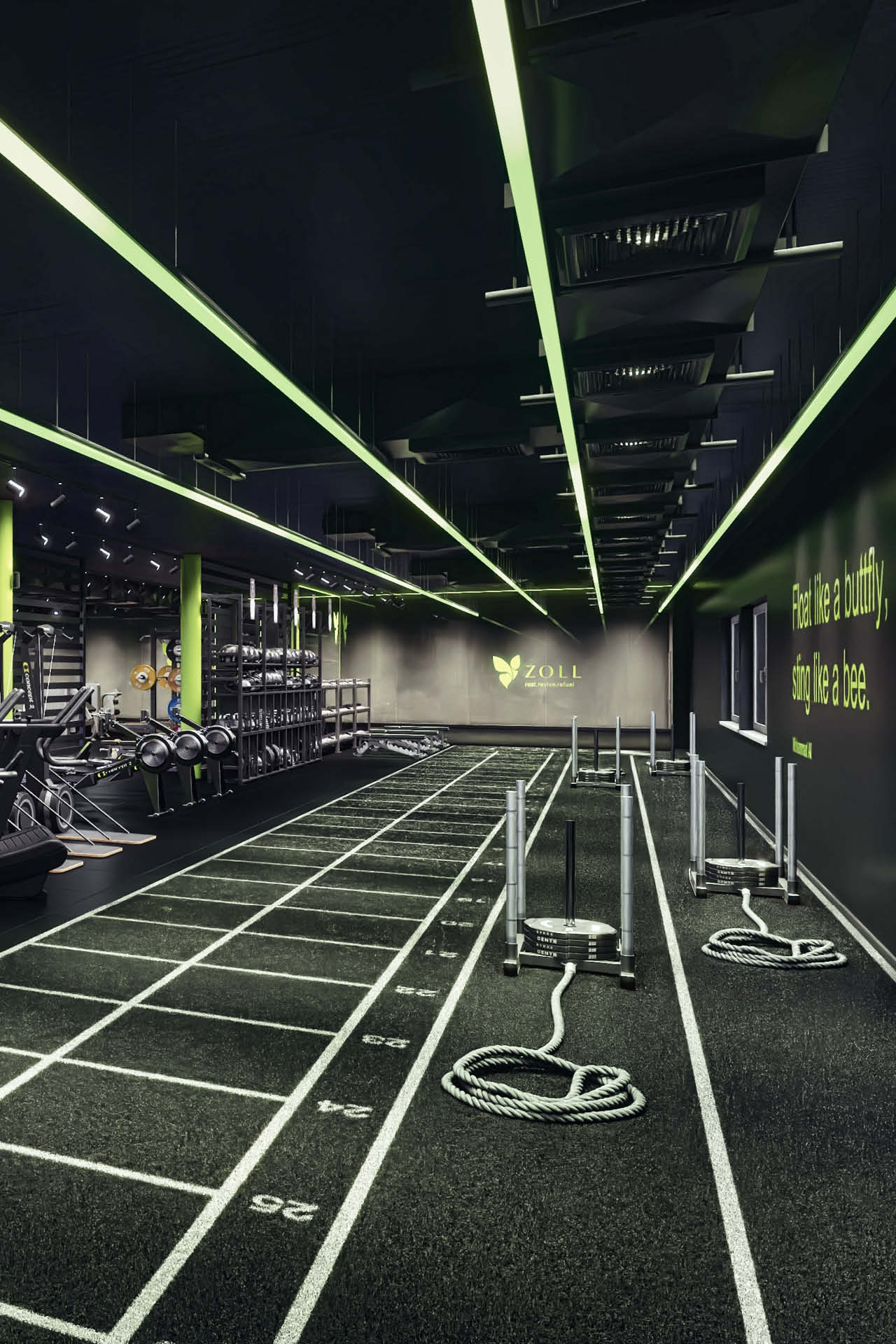 At the heart of the concept is the approximately 700 sqm training area, which offers versatile options for performance-oriented training. In addition to an extensive strength and workout area and a 32-meter-long running track, the facility features several rigs, a spacious HYROX area, and a skill court, among other amenities. The offering is complemented by targeted recovery options such as a cold tub and Zerobody Cryo, which optimally support the training process.